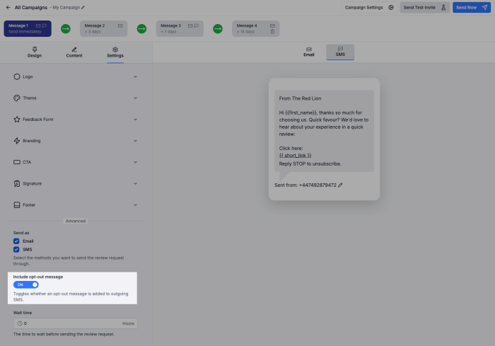 You can now add opt-out messaging to be included in review request campaigns which is required for compliance in some countries.