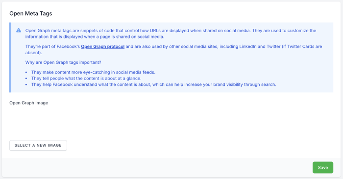 If your logo does not work when sharing links via social media you can now upload a custom image that is compliant with platforms like Facebook.